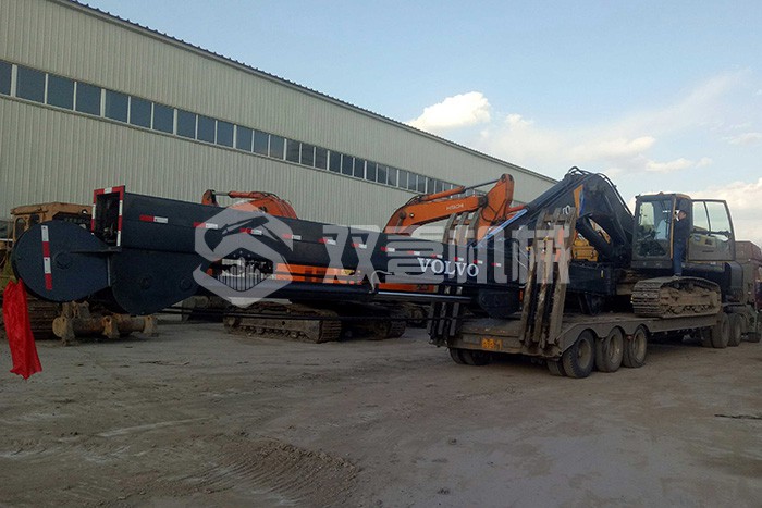 雙壹公司備有多臺長臂挖掘機,15-200米各種長度,一站式解決您的深坑挖掘難題。