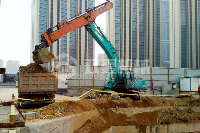 雙壹公司備有多臺長臂挖掘機,15-200米各種長度,一站式解決您的深坑挖掘難題。