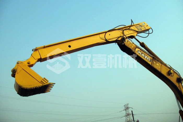 兩節伸縮臂是雙壹機械2005年自主研發的突破性產品,被多家同行模仿制造,從未被超越;臂長度19米,采用高噸位的三機聯動折彎設備折成U型,雙U型對接的焊接方式。