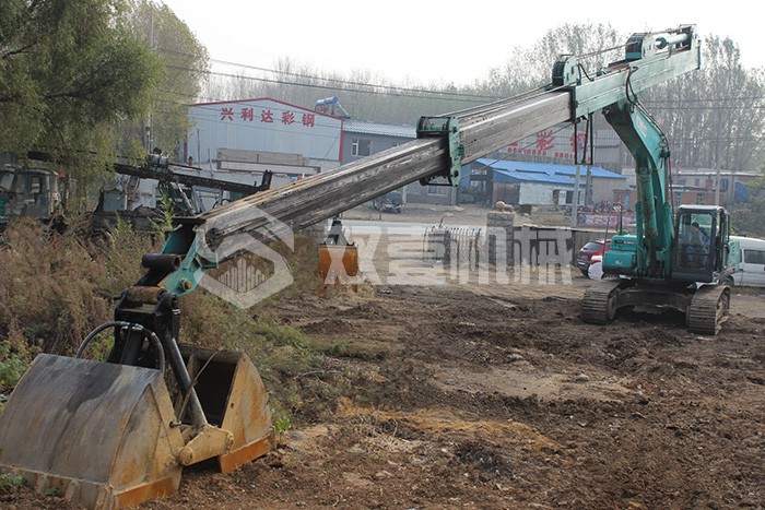 超長(zhǎng)四節(jié)臂:總長(zhǎng)度可達(dá)48米,臂內(nèi)可再伸出3節(jié),施工深度42.5米,配帶貝殼斗1.8立方或挖掘斗1.0立方。