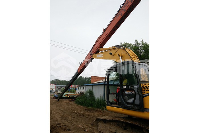 超長四節臂:總長度可達48米,臂內可再伸出3節,施工深度42.5米,配帶貝殼斗1.8立方或挖掘斗1.0立方。