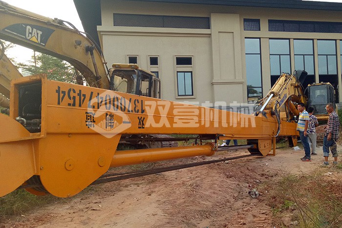 超長四節臂:總長度可達48米,臂內可再伸出3節,施工深度42.5米,配帶貝殼斗1.8立方或挖掘斗1.0立方。