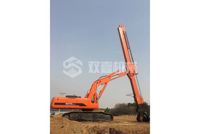 超長四節臂:總長度可達48米,臂內可再伸出3節,施工深度42.5米,配帶貝殼斗1.8立方或挖掘斗1.0立方。