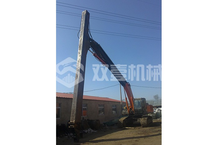 加長伸縮臂:此款采用大臂加長,小臂三節伸縮,很適合沉井類工程施工。其通過大臂加長達到井筒要求的高度,再利用小臂向下伸縮,配帶挖掘斗進行井下挖掘。